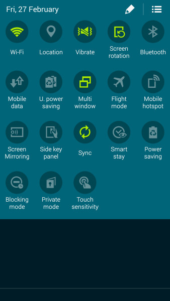 Физическая кнопка под экраном является «домашней» кнопкой. Под ней нет никакого сенсорного сканера отпечатков пальцев, в отличие от Galaxy Alpha и Galaxy Note 4.