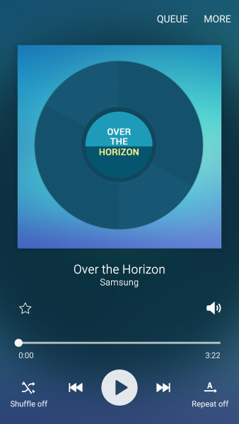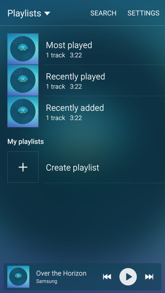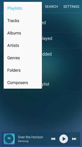 Музыкальный плеер TouchWiz был одним из самых функциональных и в то же время перегруженных аудио приложений. Теперь данное приложение выглядит чистым и, по сути, имеет два экрана. На одном из них Вы можете просматривать треки и плей-листы с выпадающим меню.