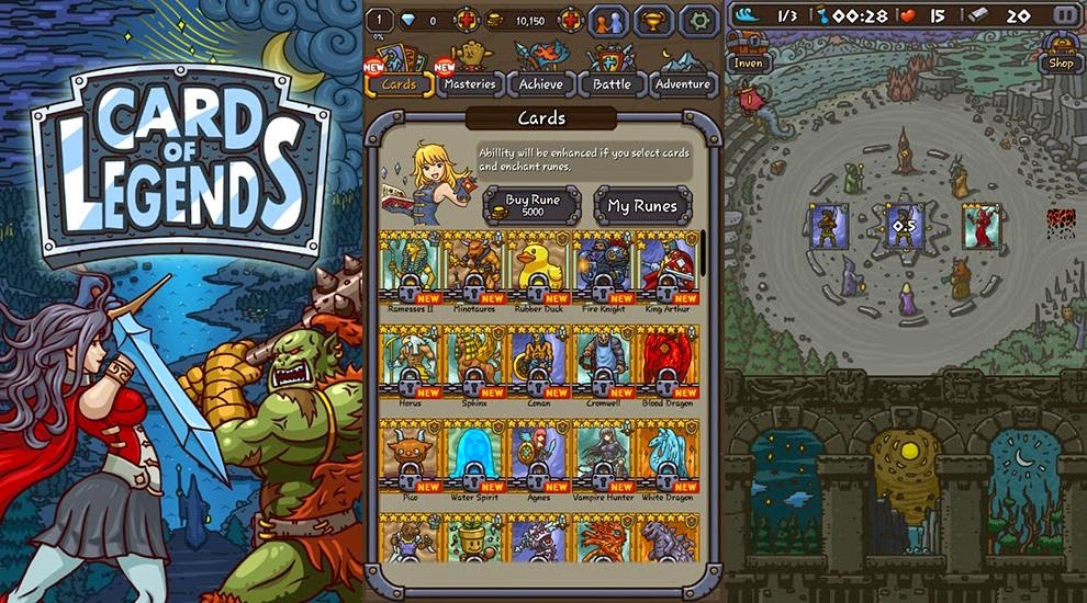 Card of Legends:Random Defense – карточная игра на андроид, с элементами обороны. В этой игре на ваше королевство хотят напасть огромные и могущественные орки, не дайте им захватить ваши земли и дайте им отпор. Вы легендарный маг, которому по силам собрать всех героев и направить их мощь против врага. Собирайте героев и сделайте их еще сильнее, чтобы сразиться с орками и их непобедимыми боссами. Путешествуйте по разнообразным картам игры и участвуйте в эпических битвах. Вступите в новую лигу и постепенно повышайте ранг своих героев и мага для того чтобы конкурировать с лучшими игроками по всему миру.