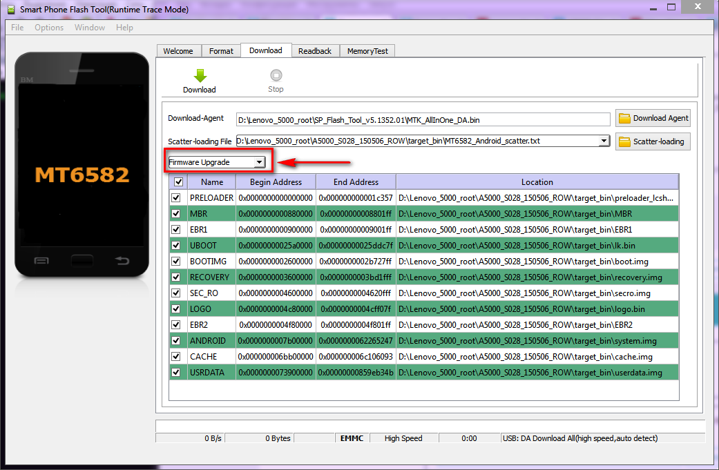7. Сменить режим прошивки на Firmware Upgrade (по дефолту стоит Download only)