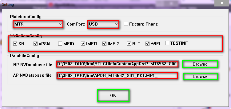 - в поле DataFileConfig указать путь к файлам AP NVDatabase и BP NVDatabase, которые находятся в папке с вашей прошивкой.