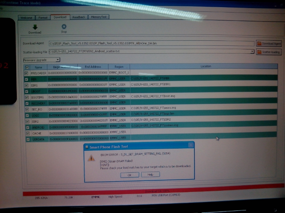 попробуй переустановить драйвер, хз я мало верю в то, что это из-за драйвера, ну а затем скачай прошивку, где есть все разделы, я там две ссылки давал