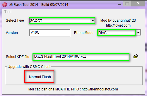 8. Нажать на кнопку Normal Flash в поле Upgrade wthis CSMG Client