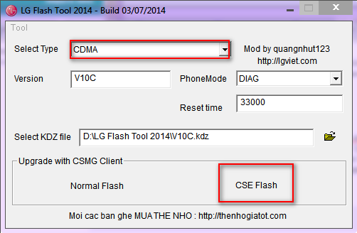 В режиме normal flash не делается wipe раздела Data, т.е. все ваши данные будут сохранены. Если прошивка в этом режиме не помогает (у вас Bootloop или ещё какие-то др. проблемы или вам нужно вернуть телефон полностью к заводскому состоянию "как из коробки"), тогда прошейте телефон в режиме CSE Flash (если вы понижаете прошивку, то шить в этом режиме обязательно!), в этом случае телефон перед прошивкой будет полностью отформатирован, для того, чтобы выбор этого режима стал доступным, в первом окне нужно выбрать вместо 3GQCT -> CDMA