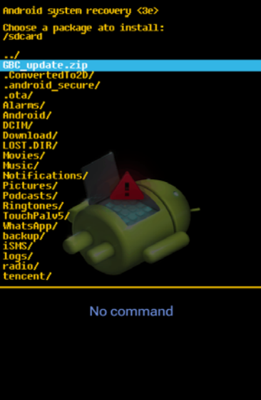 6. Выбираем apply update from sdcard -> GBC_update.zip, после чего начнётся прошивка. Дождитесь завершения прошивки и выберите reboot system now если смартфон не перезагрузится сам после установки прошивки.