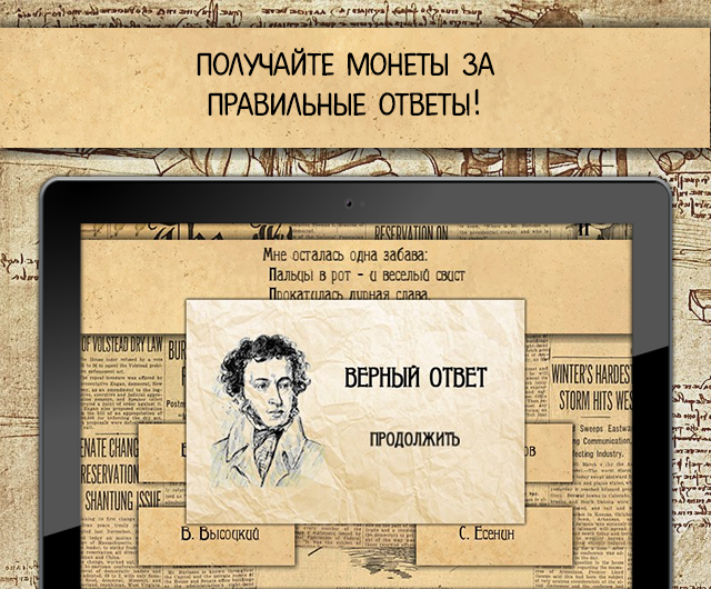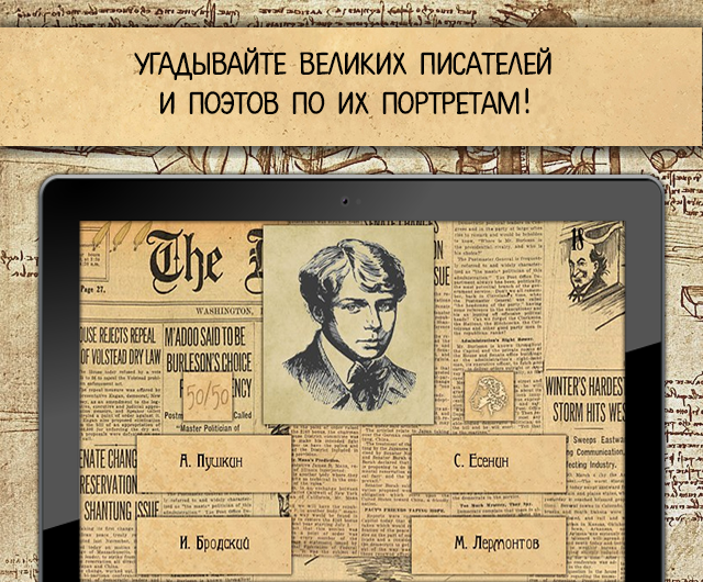 Приложение будет интересно как читателям, интересующимися жизнью любимых писателей и поэтов, так и людям, которые любят скоротать долгие вечера за интеллектуальными играми и чашечкой кофе![]()