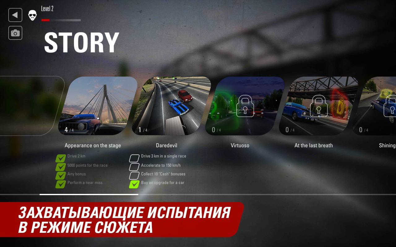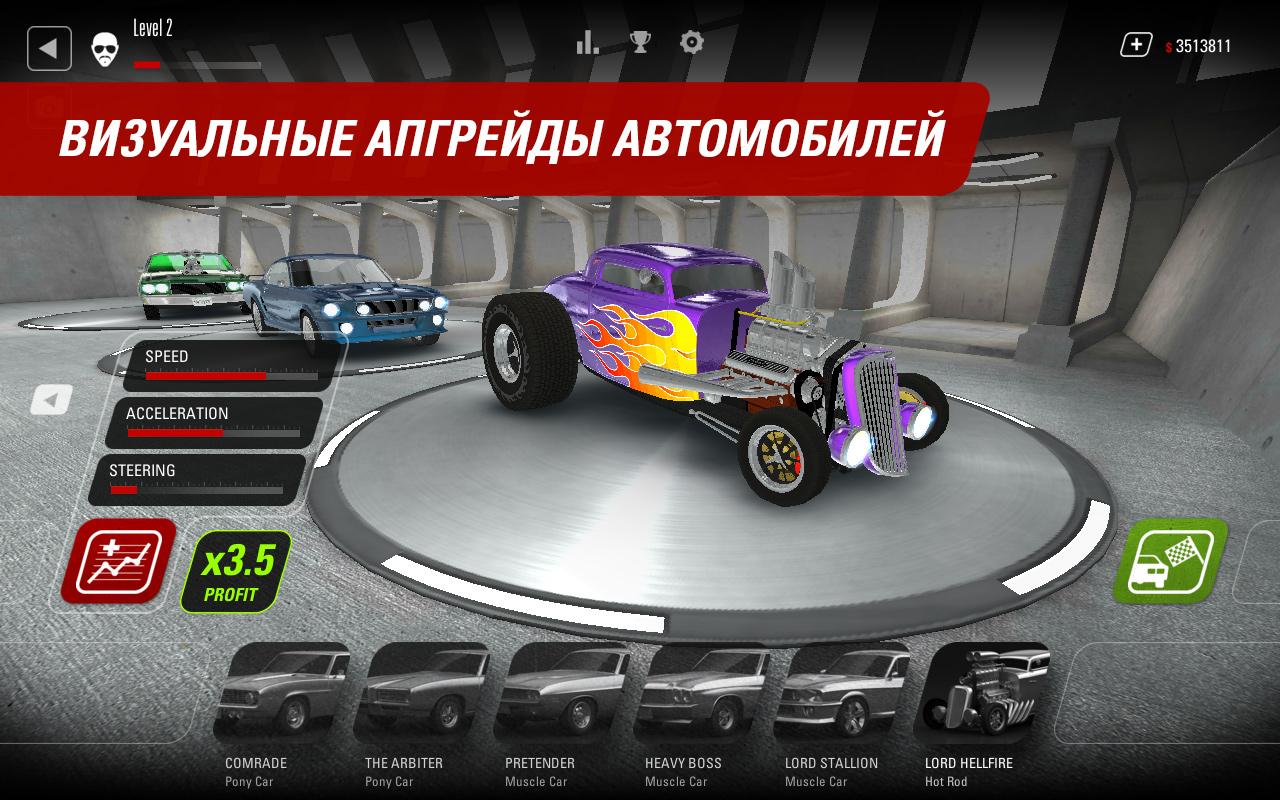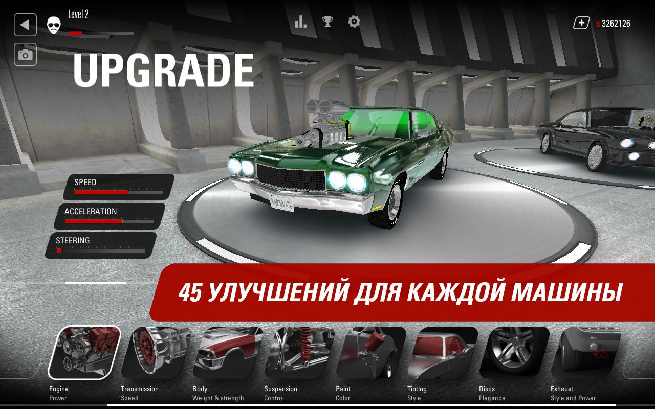Каждый раз перед тобой уникальная трасса со своими незабываемыми ощущениями и опасностями. Участвуй в испытаниях и свободных заездах на своем красавце, зарабатывай деньги для того, чтобы собрать полный гараж прекрасных мускул каров и прокачать их до настоящих зверей. Эта игра подарит тебе хорошую порцию адреналина и удовольствия от скорости.