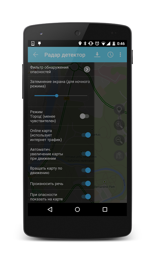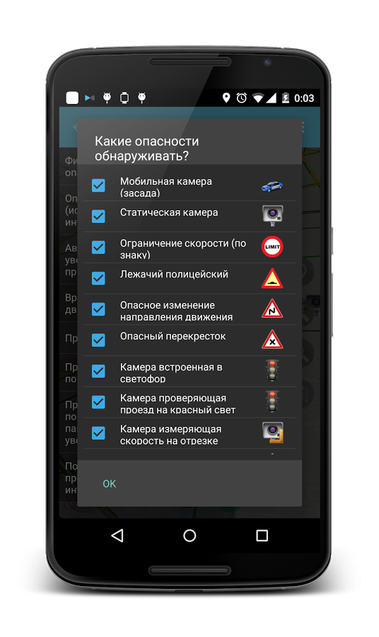★ Приложение может работать в фоне (с выключенным экраном) совместно с другими навигационными приложениями. Для этого просто включите в настройках голосовое оповещение, отключите функцию "При опасности показывать на карте" и запустите радар.