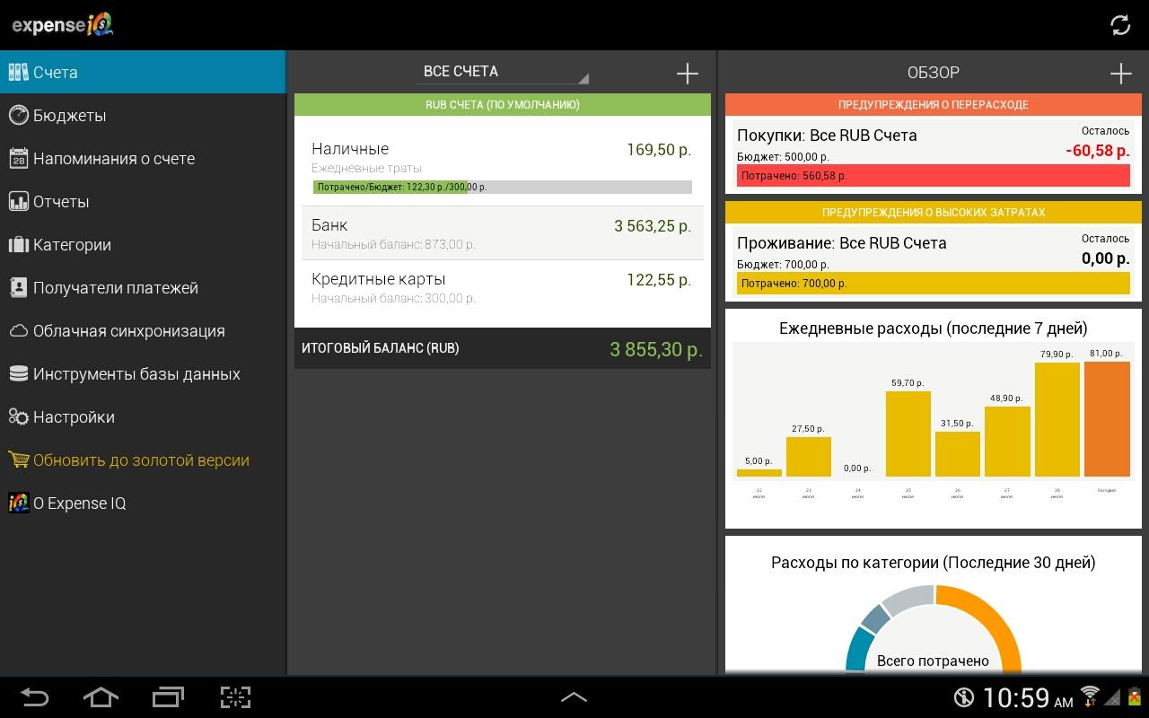 Expense IQ – менеджер расходов предоставляет подробное, детализированное описание ваших личных финансов и ежедневное управление денежными средствами.