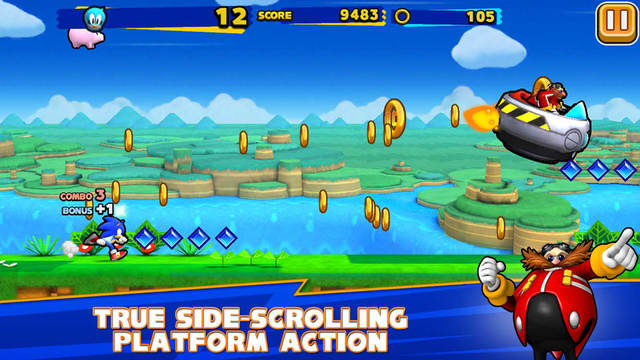 SONIC RUNNERS – раннер в котором вы будете играть за самого быстрого ежика в мире Соника. Эта новая игра в которой вы будете управлять знаменитым ежиком Соником или другими его друзьями Тейлзой, Наклзом и Эми. Бегайте по разнообразным мирам выполненным в ретро-стиле и наслаждайтесь простым управлением с помощью одного прикосновения. Управляйте бегущим Соником, проделывайте различные трюки и прыжки, а также собирайте скрытые кольца и остерегайтесь врагов попадающихся у вас на пути. Применяйте ускорения и улучшайте способности вашего героя от уровня к уровню. Конкурируйте с более 50 игроками со всего мира и добивайтесь лучших результатов.