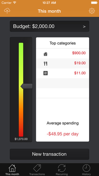 - Все свои платежи вы можете записывать в разделах Expenses (Траты) и Recurring (Повторяющиеся траты).