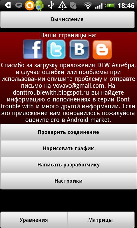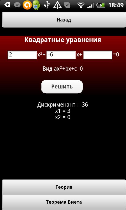 Приложение создано для того, чтобы не париться на контрольной или экзамене, или просто на уроке алгебры, чтобы решить то или иное уравнение, матрицу, интеграл или логарифм, просто достав из кармана любимый телефон, ввести числа и списать ответ, также темы дополнены справочными материалами, если вдруг вы забыли как написать решение.