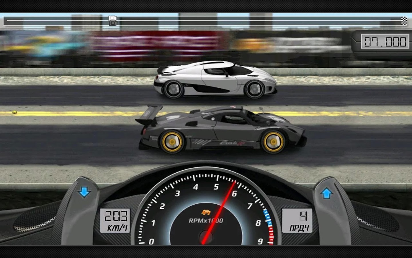 - Гонки на 1/4 или 1/2 мили, в которых решают скорость реакции и настройки машины