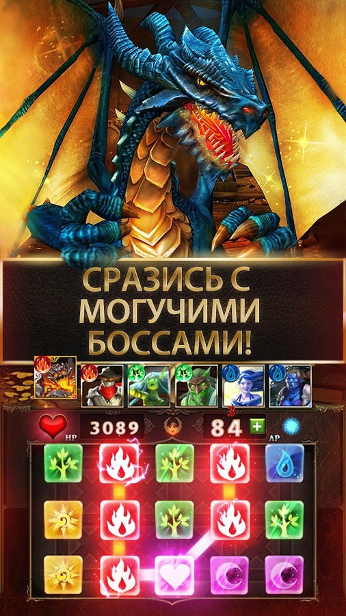 Dungeon Gems / Сокровища Подземелий - ролевая игра, в которой вы столкнетесь с древними драконами и волшебными силами нескольких стихий. Отправляйтесь в увлекательное фэнтезийное приключение, где вам предстоит пройти по мрачному подземелью сражаясь с врагами, победив их всех вы сможете попасть на самую вершину горы драконов и узнать тайну спящего дракона. Выбирайте себе воинов из большого разнообразия, с разными способностями которые пригодятся вам в бою и берите в союзники лучших игроков для быстрой победы над врагом.