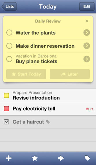 - Сегодня: решите, какие дела предстоят сегодня и поместите их в этот список. В течение дня заглядывайте в него, чтобы проверить, как идут дела. Things автоматически покажет вам задачи с наступающим сроком и задачи, назначенные на сегодня, - так что вы не пропустите ничего важного.