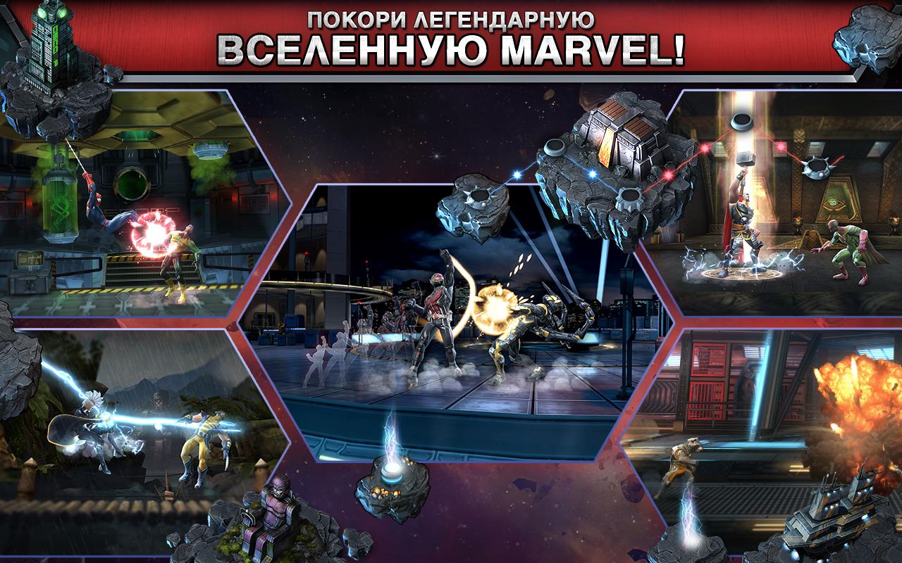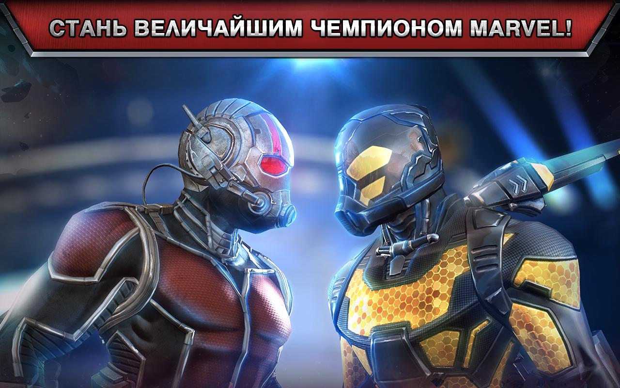 Marvel: Битва чемпионов - интересный файтинг выполненный во вселенной Marvel. Все персонажи вам давно знакомы, вышли они со страниц комиксов Marvel - известной на весь мир своими комиксами и колоритными супер героями. Каждый боец владеет своими ударами и секретными приёмами. В игре вам необходимо собрать свою команду бойцов, в которой могут быть не только положительные герои, но и отрицательные персонажи. Объединяйте в свой отряд самых сильных бойцов и вместе дайте бой самому опасному злодею вселенной.