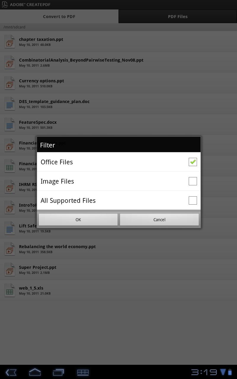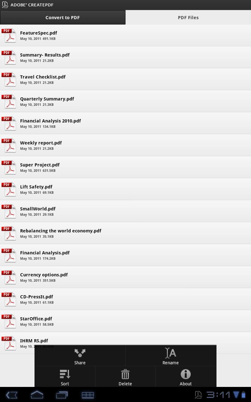 Adobe CreatePDF - важнейшее приложение для работы с документами на Android-устройствах. Оно позволяет Вам создавать высококачественные PDF-документы, выглядящие точь-в-точь как оригинал, которыми легко делиться с кем угодно, использующим бесплатный Adobe Reader на любом устройстве и любой платформе.