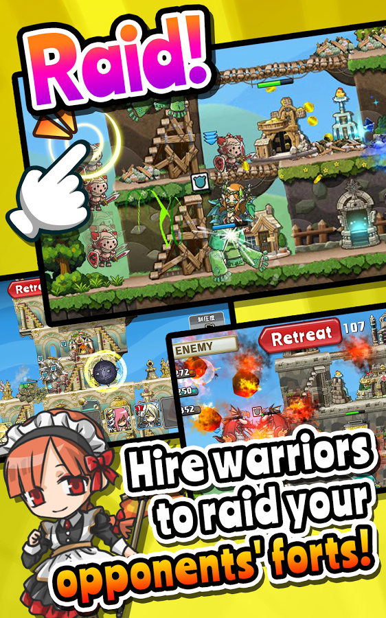 Fort Raiders SMAAASH для Андроид это тактическая стратегия из жанра Оборона башен с элементами тач-аркады и ролевой игры. Игровая механика потребует от вас не только ловкости и сноровки, но и способности быстро и верно принимать решения. Ваша задача построить сооружение при этом постараться отбить нападения конкурентов.