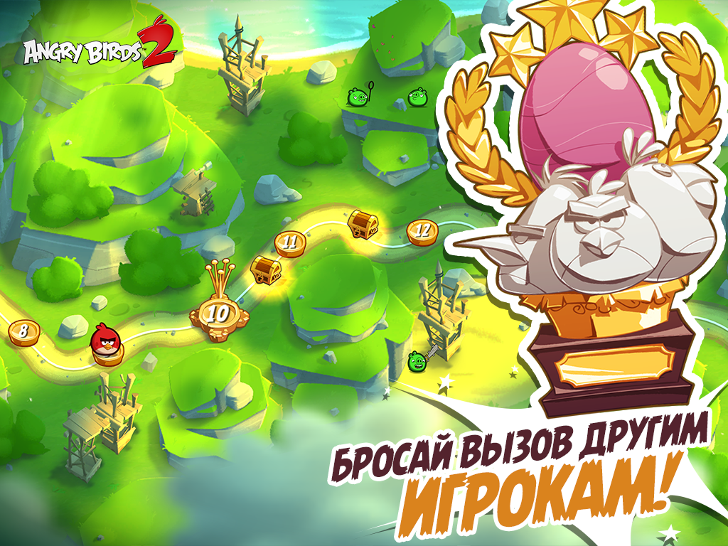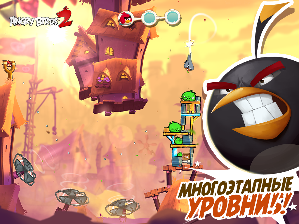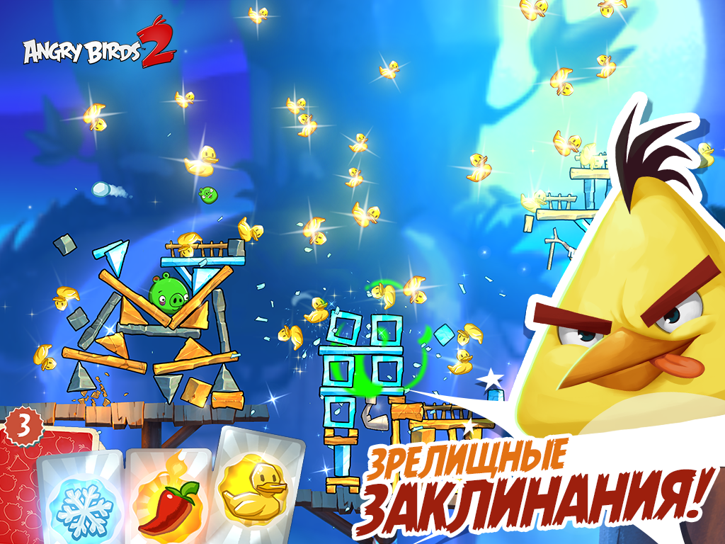 Angry Birds 2 – злые птички триумфально возвращаются на экрана мобильных девайсов. Механика игры практически не претерпела ни каких изменений, как и всегда стреляем из рогатки по зелёным свинушкам. Теперь вы можете сами выбрать какую птицу в данный момент лучше запустить и это положительно повлияло на игровой процесс. Проходим многоуровневые уровни и стараемся победить сильных и хитрых свинобоссов. Новой особенностью игры является появление различных заклинаний способных облегчить прохождение игры. Если надоело играть самому, тогда отправляйтесь на арену и соревнуйтесь с реальными игроками.