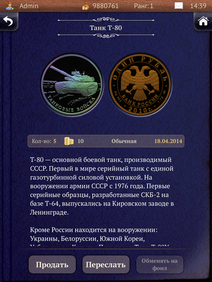 - Изучение истории. У каждой монеты есть история, в свою очередь историю можно изучать по монетам. В нашей игре мы добавили к каждой монете описание, рассказывающее о ее сюжете.