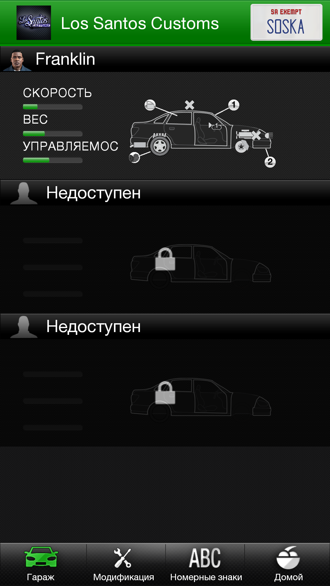 Los Santos Customs позволит создать автомобиль своей мечты, наделив его всему необходимыми чертами, где бы вы не находились. Выбрать кузов, покрасить его, поменять диски, капот и спойлер, затонировать и установить новые двигатель, тормоза, выхлоп и подвеску, ксенон, бронепластины... Все что душе угодно. А самое главное - этот автомобиль потом можно будет забрать из своего гаража, да еще и со своими фирменными регистрационными знаками.