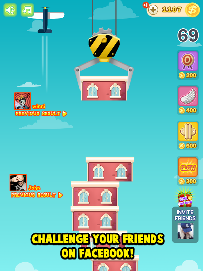 Tower With Friends – постройте самый высокий небоскреб в городе, используя для этого строительный кран. Ваша задача заключается в следующем, с помощью крана устанавливайте блоки на дом и смотрите, чтобы здание не разрушилось. Сложность игры состоит в том, что блоки постоянно раскачиваются и норовят соскользнуть с крана в неудачный момент и тем самым разрушить здание. С помощью этой игры развивайте свои рефлексы и устанавливайте невероятные рекорды, состоящие в высоте здания. Делитесь своими результатами с друзьями через социальные сети. Эта игра подойдет для игроков любого возраста с разными способностями.