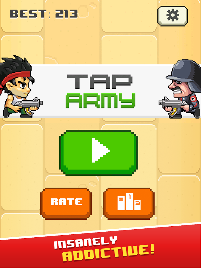 Tap Army - безумно захватывающая аркада с вечно нападающей вражеской армией. Для защиты своих территорий вы должны вовремя сдерживать постоянно атакующих солдат, используйте заградительный огонь. Так-же в распоряжении союзных войск есть такие виды защиты как танки и вертолеты – они непременно помогут вам выйти из сложной ситуации целым и невредимым. У ваших солдат есть современное вооружение, такое как: мини пистолет, огнемет, лазерная пушка, и SMG. Игра проходит в бешенном ритме .если вы немного замешкались, тогда вам конец. Игра является своего рода отличной проверкой вашей реакции.