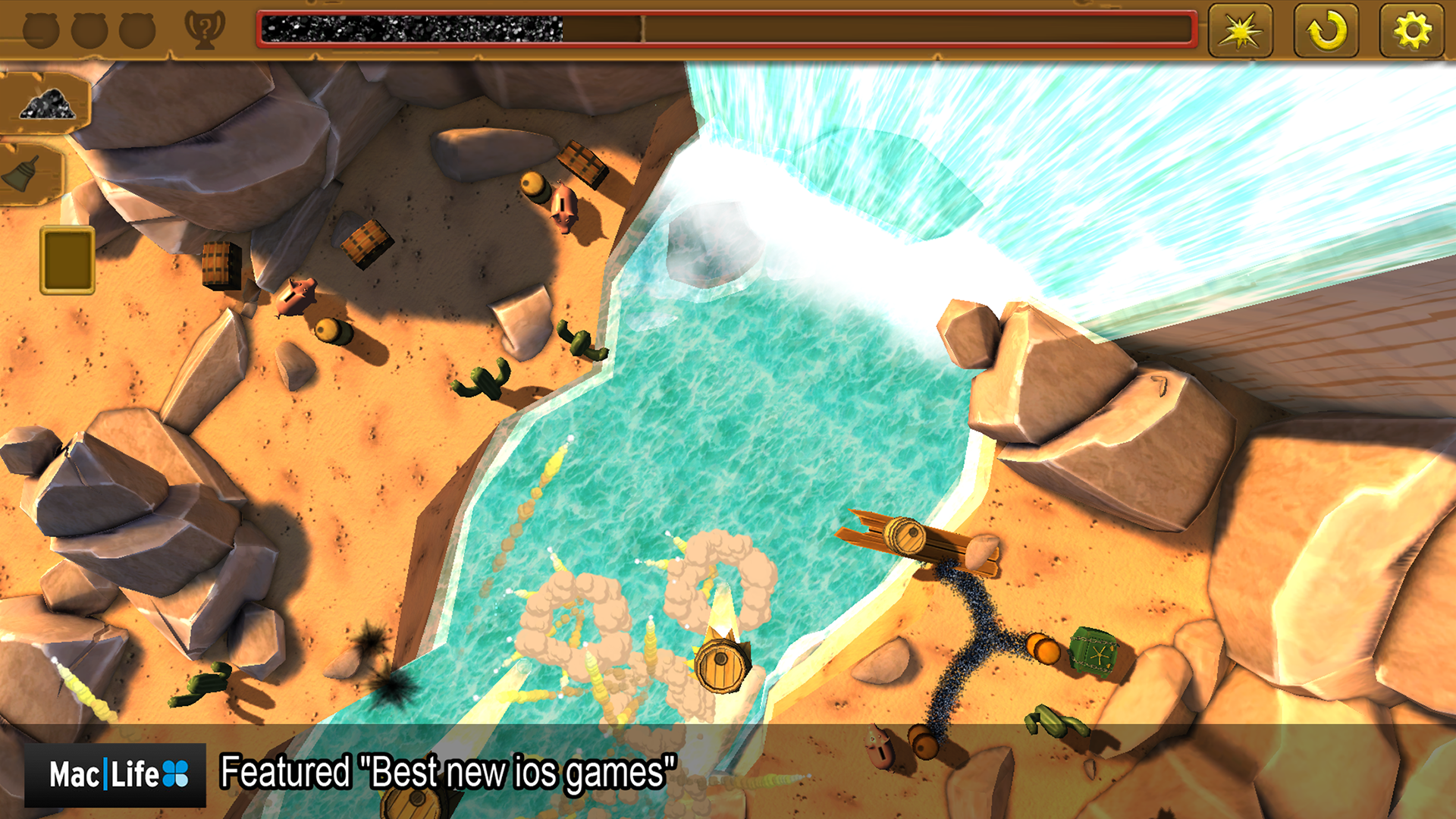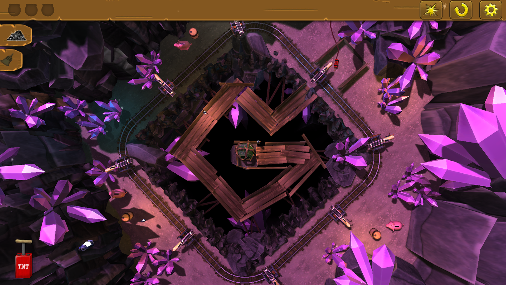 Gunpowder – увлекательная, яркая головоломка, в которой вам необходимо взрывать бочки с порохом, для того, чтобы освободить городские запасы золота от рук злобного бандита Гримшоу. Сделать это не всегда удаётся с первого раза. Необходимо правильно рассчитать силу и направление взрывной волны. Для того чтобы взрыв пришёлся именно по тому место, где находится золото. В игре просто огромное количество уровней ждёт вас. Проложите через них тропу из пороха. Для достижения цели используйте используя огненные повозки, пушки Гатлинга, люстры, обычные пушки, минные тележки и другие предметы.Cкачать: