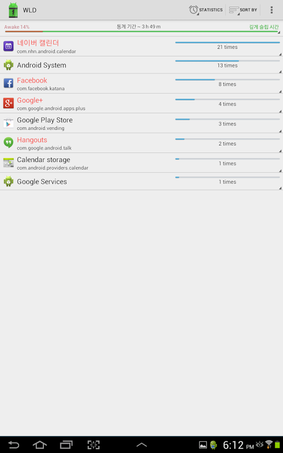 Wakelock Detector призван собирать статистику по таким пробуждениям помогает определить, что именно не дает вашему смартфону “уснуть" и, соответственно, нерационально использует заряд батареи. Полученные данные можно просматривать, систематизируя по различным параметрам, а изучив результаты, вы сможете решить, что делать с пожирателями заряда дальше. Кстати, еcли вы действительно хотите получить корректную статистику, оставьте смартфон с запущенным приложением в покое хотя бы на пару часов.