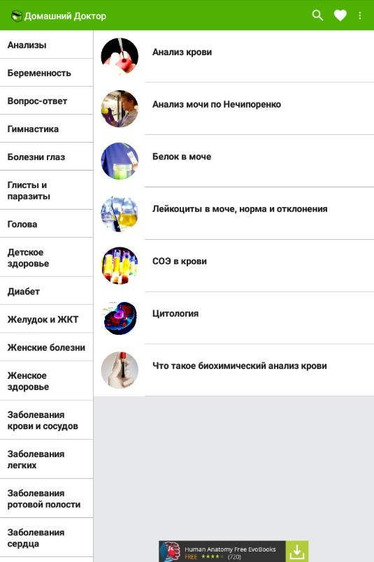 43 раздела, более тысячи статей и 6 тысяч народных рецептов. Список заболеваний отсортирован по рубрикам, поиск записей, сохранение в закладки и работает без интернета, это делает приложение незаменимым помощником.