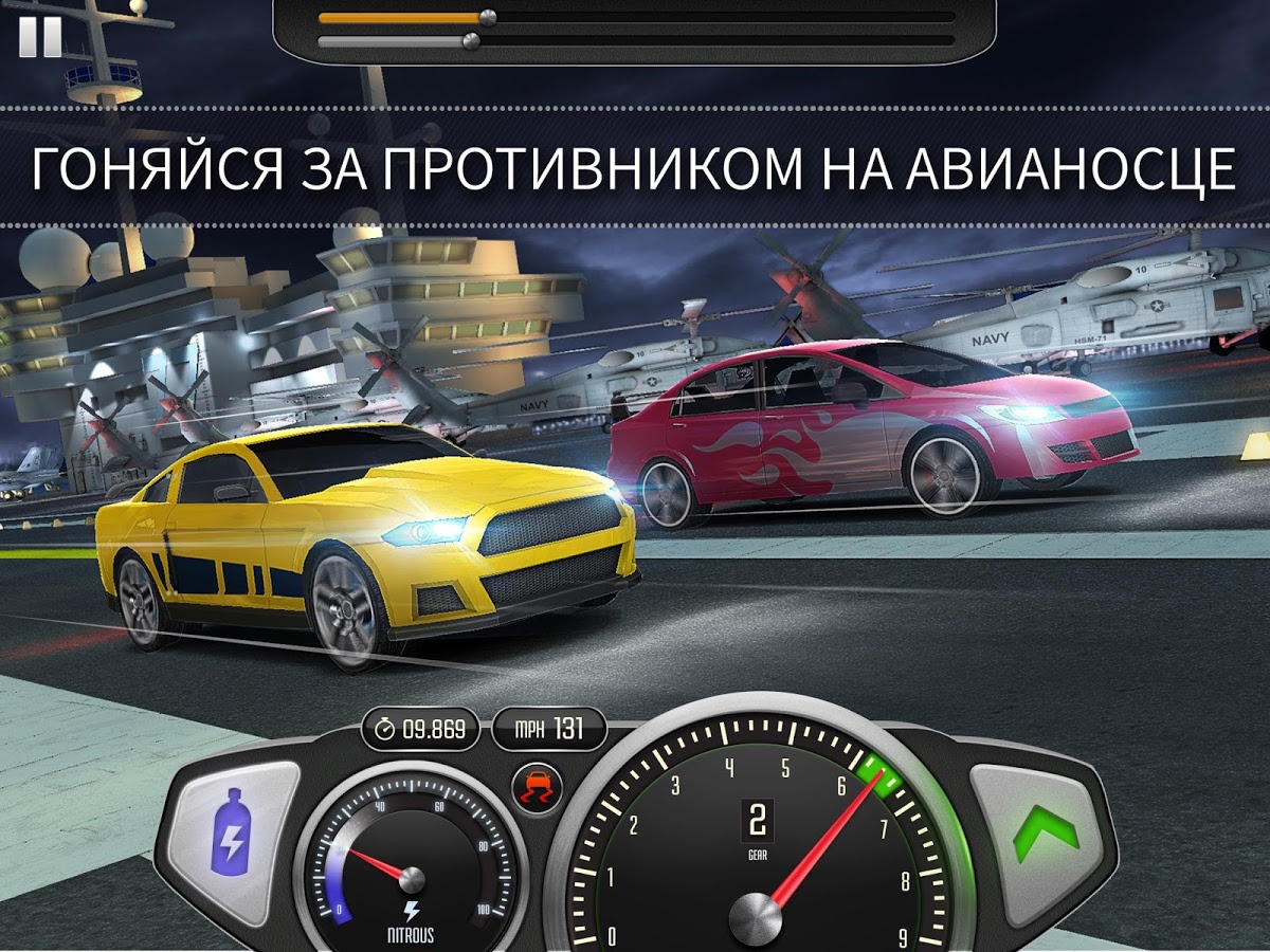 Top Speed: Drag & Fast Racing - увлекательные драг-гонки на огромных скоростях. В игре большой выбор автомобилей - их в общей сложности около 70. Также в игре присутствуют боссы, порядка двух десятков. Все драг гонки очень чувствительны к управлению своей машины, всегда необходимо вовремя переключать передачи и включать прямой впрыск нитрометана в двигатель.