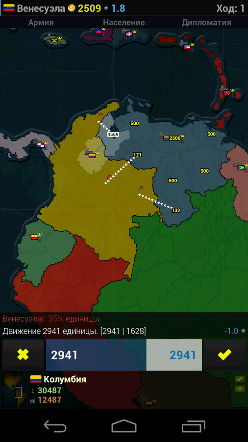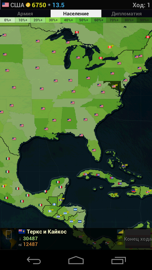 Age of Civilizations America – интересная пошаговая стратегия с большой картой и огромными возможностями. На карте 320 областей. Каждая со своей инфраструктурой армией и населением. Каждая область имеет свои сбережения, которые накапливаются за счёт налогов. Средства из казны могут идти на содержание армии, естественно, что чем больше армия. Тем больше и расходов на неё. В каждой области можно вести строительство различных объектов. В игре можно объявлять войну или заключать мир. Стройте оборонительные укрепления для защиты своих территорий. Сделайте всё возможное для подчинения всех территорий.
