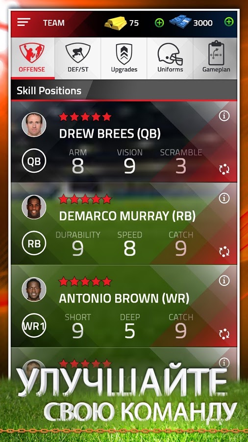 TAP SPORTS FOOTBALL - новый спортивный симулятор от одного из крупнейших разработчиков мобильных игр студии Glu. На этот раз Glu решила обратить свое внимание на Американский футбол. Стоит отметить что TAP SPORTS FOOTBALL вызывает довольно противоречивые чувства. Большинство последних проектов данного разработчика это по быстрому слепленные ранеры и гонки, создание которых поставлено на поток. Но запустив TAP SPORTS FOOTBALL первый раз мы сразу отмечаем хорошо проработанную графику, неплохой и понятный интерфейс, возможность набора команд из реально существующих игроков NFL, возможность онлайн сражений при помощи социальных сетей. Все вроде бы неплохо. Но стоит запустить матч как поклонников симуляторов ждет разочарование, геймплей носит чисто аркадный характер, управление в одно касание и довольно ограниченные тактические возможности. Но с другой стороны данная игра без сомнения привлечет внимание поклонников динамичных аркад на спортивную тематику.