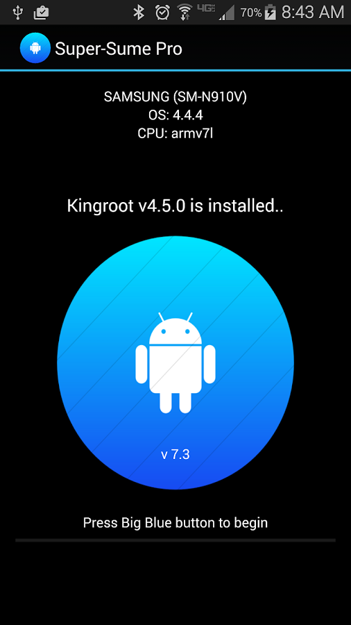Для установки SuperSU нужно нажать большую синюю кнопку, предоставить доступ и ждать...