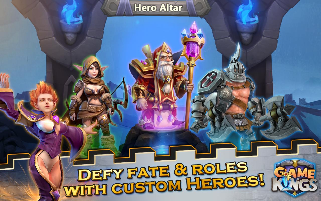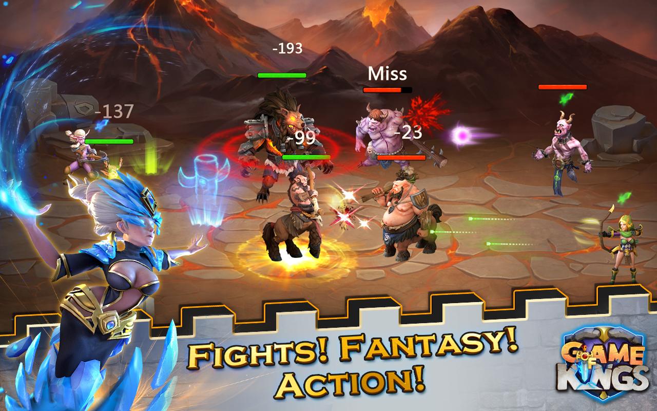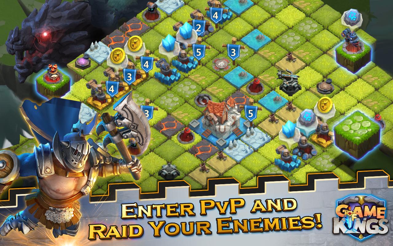 Game of Kings – увлекательная стратегия на андроид, где вам предстоит построить свою базу и защитить ее от многочисленных врагов. Занимайтесь строительством и также не забывайте собирать армию героев, которые помогут вам в бою. Исследуйте огромный мир и открывайте для себя необходимые ресурсы, добывая которые вы сможете дать отпор врагам. Станьте настоящим полководцем и ведите свою команду героев сквозь опасные подземелья, кишащие различными монстрами и демонами. Побеждайте сильных врагов и боссов и собирайте после них ценную добычу. По ходу игры открывайте новых персонажей и улучшайте своих, делая их непобедимыми. Делайте набеги на вражеские базы и уносите от туда все ценное, что попадется вам по пути.