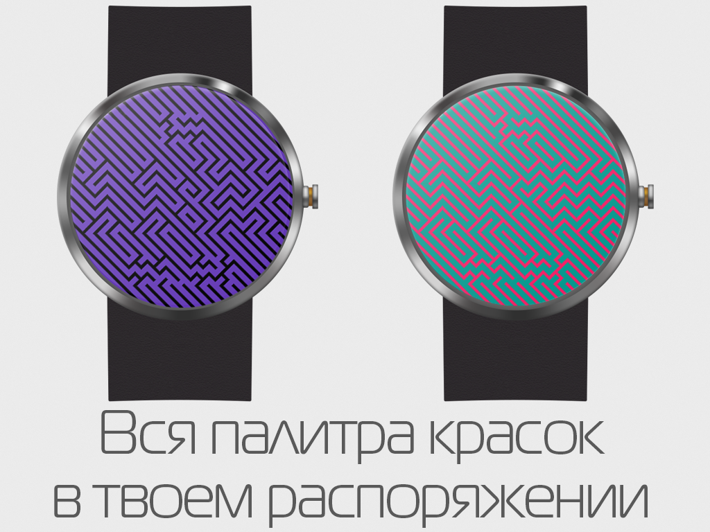 Данный циферблат — просто находка для желающих “сломать" себе глазаВместо обычных цифровых часов на вашем циферблате будет только лабиринт из ломаных линий. Секунду на размышления — и вот в хаосе линий перед вами уже проступают знакомые знаки. Первые разы получается не слишком быстро, но немного потренировавшись вы сможете запросто шокировать друзей своими умениями. Настройки приложения многочисленны, среди прочего здесь можно выбрать цвет линий и фона, палитра при этом весьма многообразная.