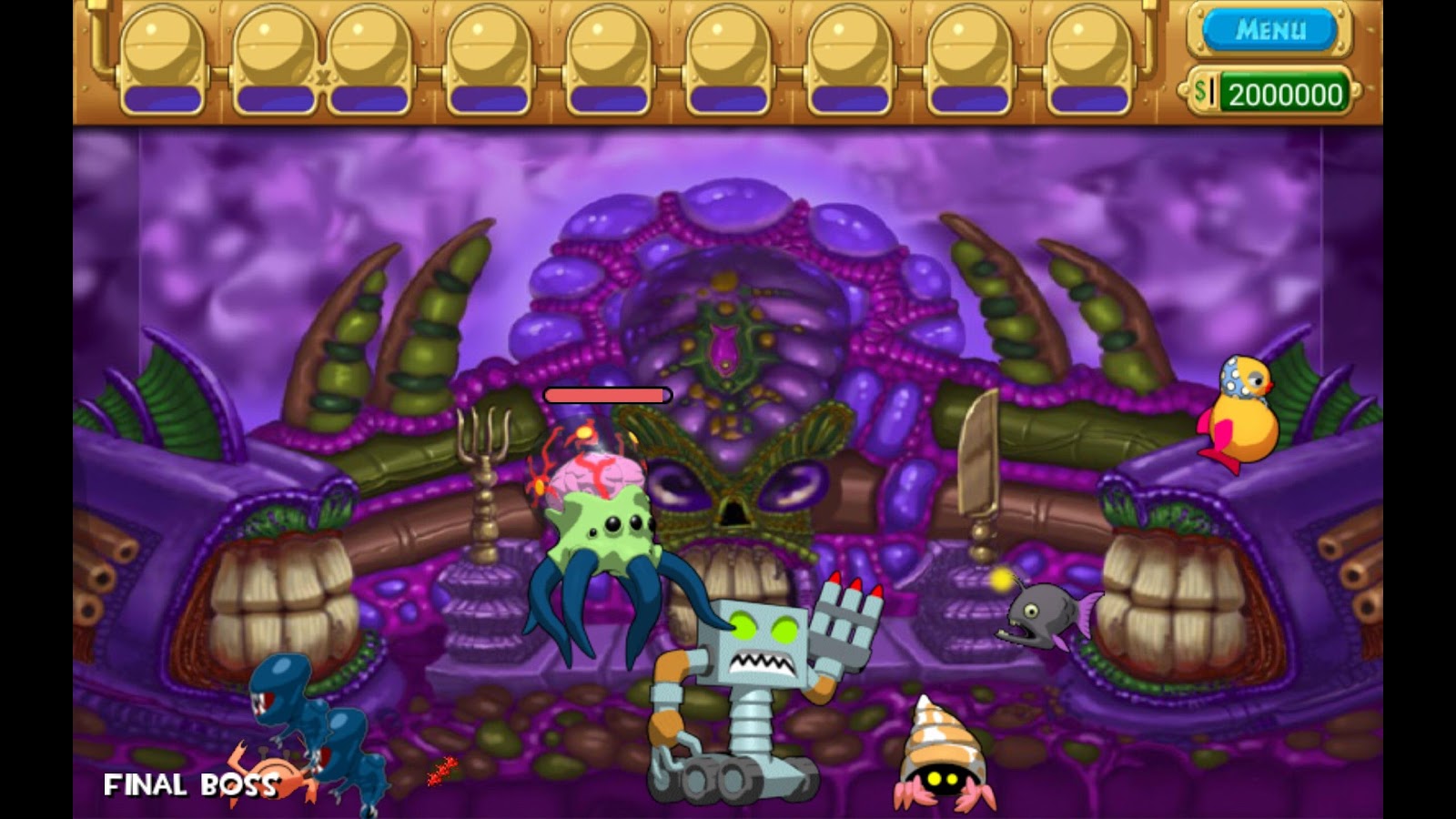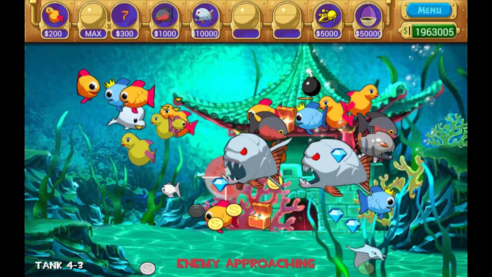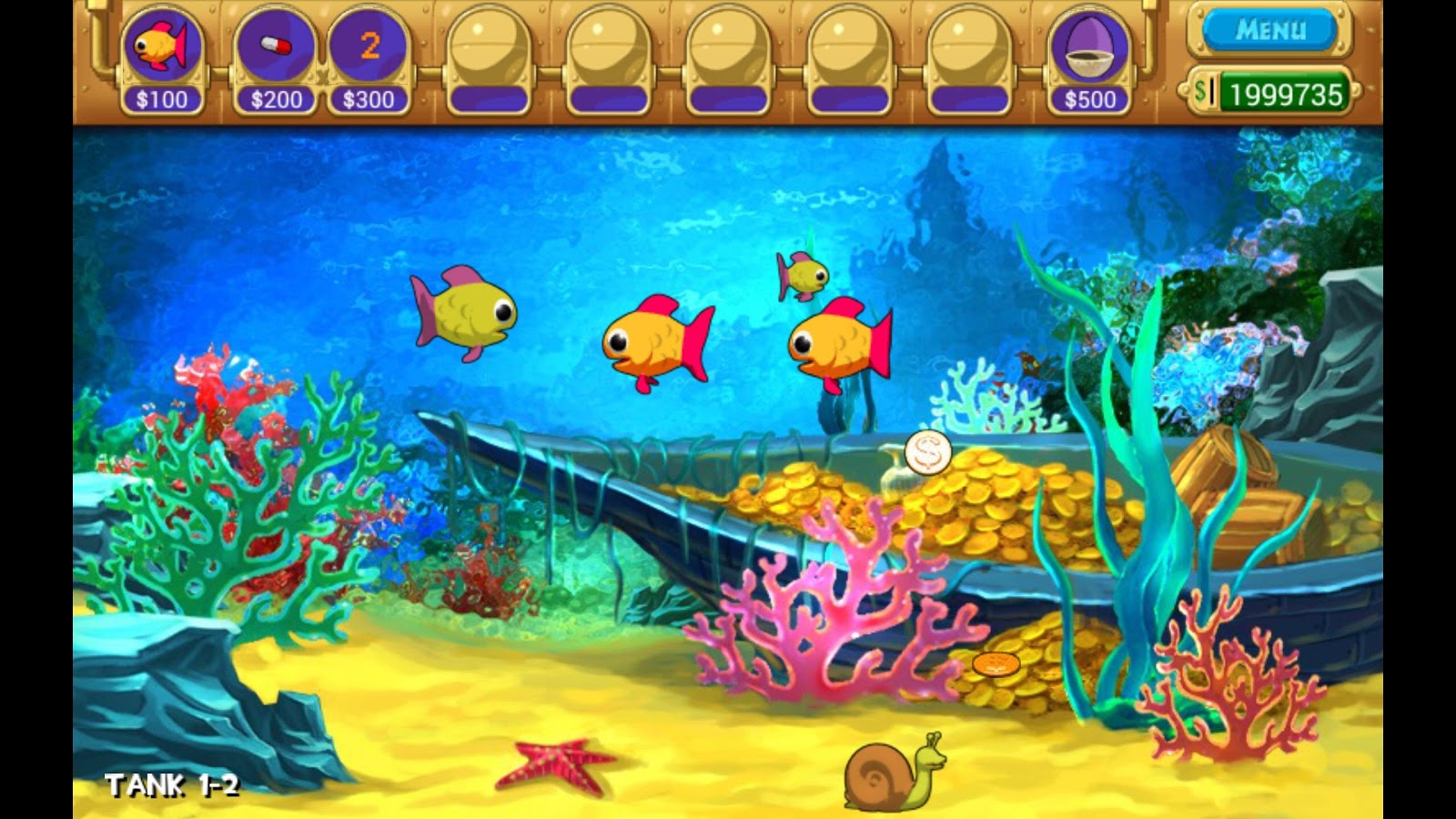 Insaquarium - Strange Aquarium – игра на андроид, которая погрузит вас в аквариум с фантастическими рыбками. Вашей задачей в этой игре будет поддерживать баланс в пищевой цепи. Управляйте маленькой рыбкой и собирайте монетки для того, чтобы получить еду. Чем больше вы соберете монет - тем быстрее для вас откроется новая рыбка, которая по размерам будет превышать вашу прежнюю в два раза. Открывайте также для себя новые виды оружия, чтобы защититься от вторжения чужеродных рыб и огромных боссов. Поддерживайте жизнь в аквариуме с фантастическими рыбками и не дайте своему питомцу погибнуть.