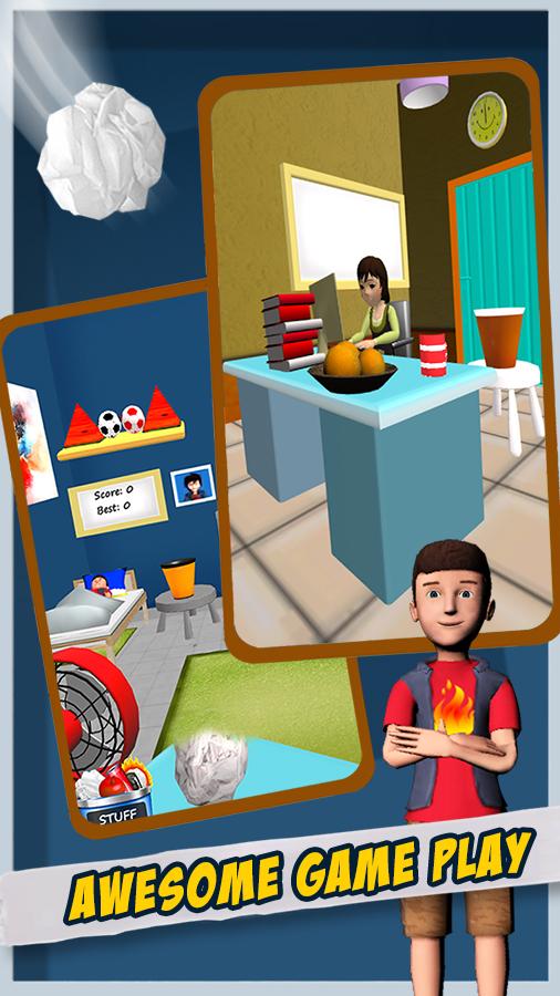 Paper Toss 2015 – увлекательный тайм-киллер на андроид, в котором вам предстоит забрасывать смятый листок бумаги в корзину. Эта игра перенесет вас в офис, где чтобы не скучать потренируйте свою меткость в забрасывании бумаги в корзину. Вы можете кидать мусор в корзину в офисе, в кабинете боссам, в холле и на улице, выбирайте понравившуюся вам локацию и зарабатывайте очки. Также вы сможете кидать бумагу в корзину, в сотрудников офиса и прохожих людей. Вам может показаться, что эта игра очень простая, но это совершенно не так - сложность ее заключается в том, что на полет смятого листка бумаги будет влиять направление ветра из вентилятора. Зарабатывайте очки и устанавливайте свои рекорды в этой игре.