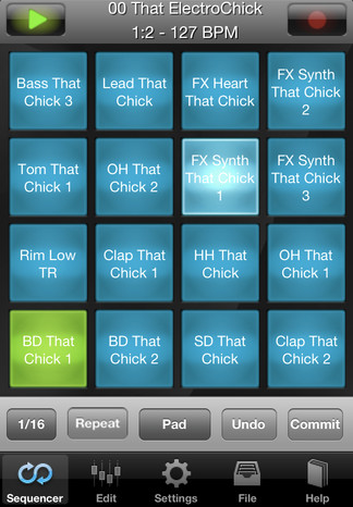 - Pad, Pitch, Velocity, Erase, Mute/Solo