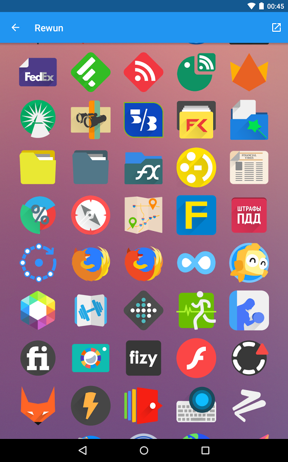 Rewun - очень креативное и уникальное приложение. Измените иконки вашего устройства из простых на творческие самобытные и неповторимые. Захватывающая детализация и профессионально подобранные цвета и тени, для каждой иконки, и яркий фон, перенесут ваше устройство на новый уровень, и сделает ваш неповторимым. И если вам уже не из чего выбрать вы можете скачать новые фоновые рисунки. Наслаждайтесь видом новых иконок, которые вы сами подберете для себя.