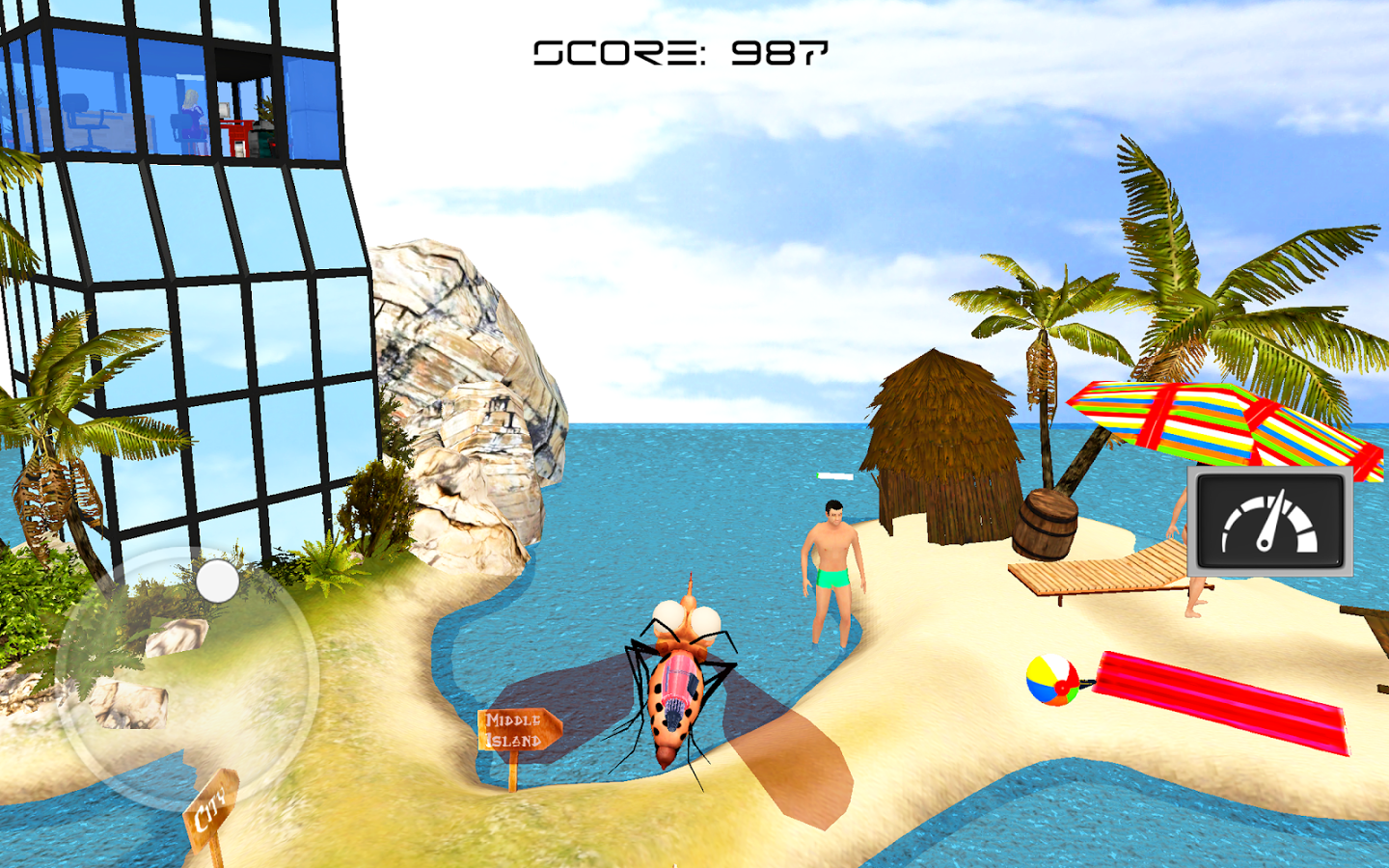 В этой игре вы сможете побывать на месте комара! Почувствовать всё то, что испытывает комар, раздражать людей на отдыхе или в офисе, напиться их крови и конечно же лопнуть от жадности) Но не забывайте, что вас могут и прихлопнуть, так и не дав поживится. В этом и заключается ваша основная задача, летать и раздражать людей своим писком и как можно больше высосать кровь пока вас не раздавили.