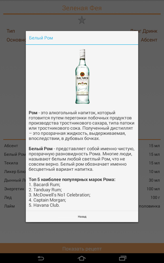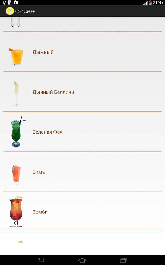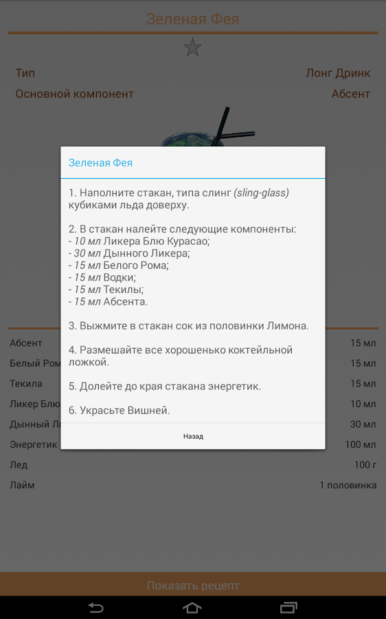 Есть среди нас любители попивать коктейли? А создавать их? Для последних данное приложение будет особенно полезно, ведь здесь собрано множество интересных рецептов, которые вы можете повторить прямо у себя дома.