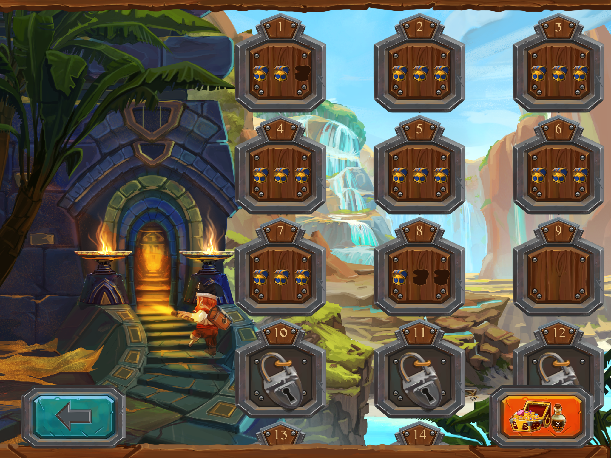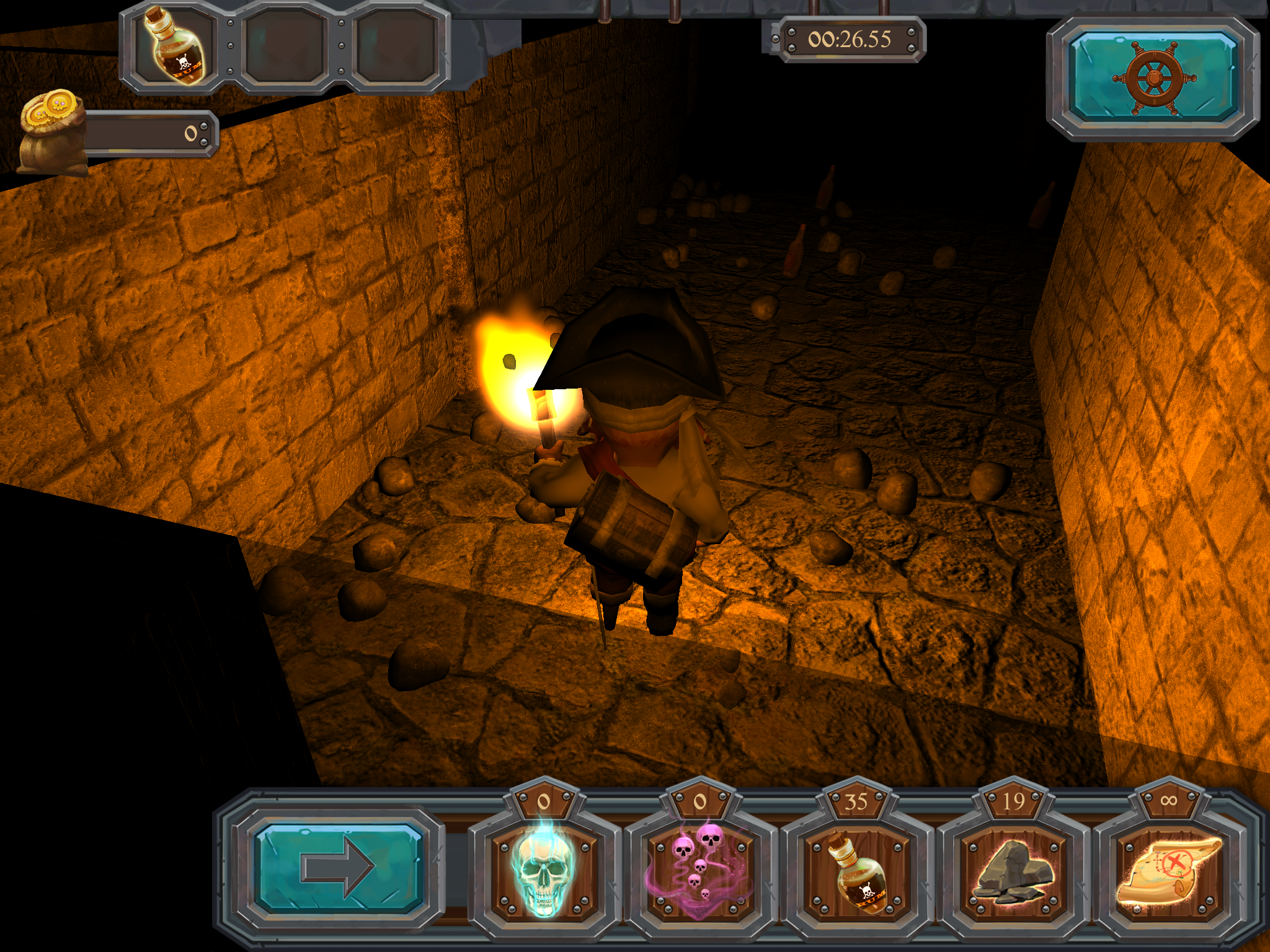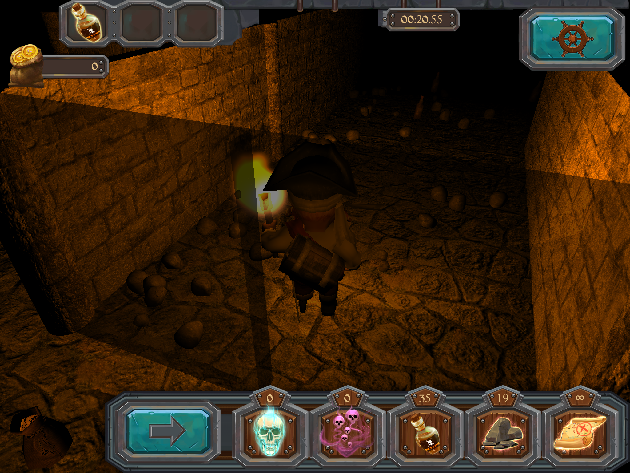 Бонус “Show Traps”, покажет на некоторое время, все ловушки имеющиеся в лабиринте. Найденная в лабиринте или купленная за собранное золото, бутылка рома, восстановит одну потраченную жизнь. С помощью собранных камней в лабиринте, можно обезвредить ловушку.
