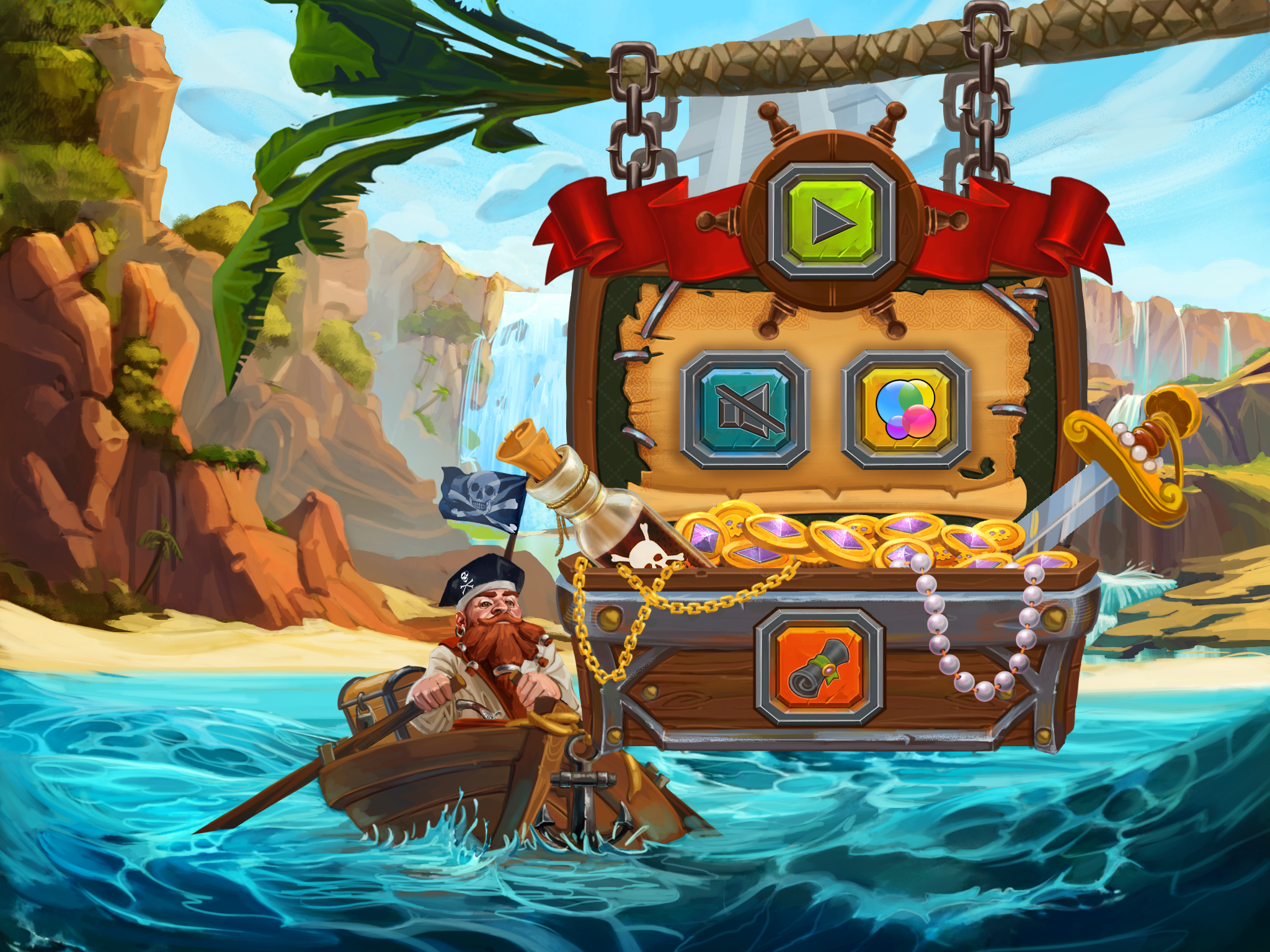 Управлять пиратом достаточно просто. Пират не выполняет прыжков или каких-либо трюков. Он идет, бежит или уходит в стороны. Нет фиксированного места для управления. Управлять можно с любого удобного места на экране.