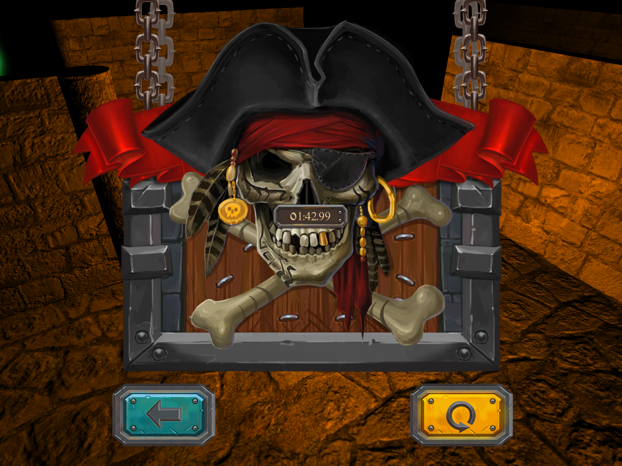 В игре лабиринты имеют мрачный и мало освещаемый вид, но эту темноту иногда разбавляют красочные метки используемых бонусов. Дизайн меню игры красочный, живой и представляет собой предысторию того, как пират попал в лабиринты. Но историю того, как пират выберется из лабиринтов создает сам игрок.![]()