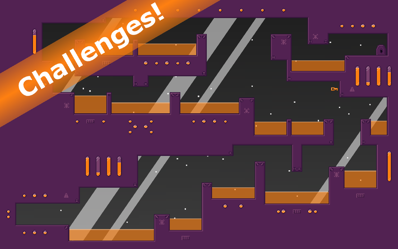 Jettison – платформер на андроид, где вам предстоит помочь астронавту покинуть Луну. Наш герой работал на заводе, находящемся на Луне, в один момент он стал разрушаться и теперь ему во чтобы то не стало необходимо как можно быстрее найти спасательную капсулу и улететь с Луны. Перемещайтесь по запутанным лабиринтам завода и собирайте ключи нужные, чтобы открыть следующий уровень. Завод таит в себе много смертельных ловушек в виде лазеров и кислоты. Обходите все препятствия, летая на реактивном ранце и экономьте топливо которое может закончиться в любой момент. Сложность игры будет увеличиваться с каждым новым уровнем, приложите все свое мастерство и умения, чтобы пройти их.