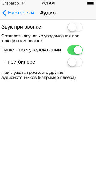 Программа может работать в фоновом режиме (только звуковые уведомления, бипер и вибрация).