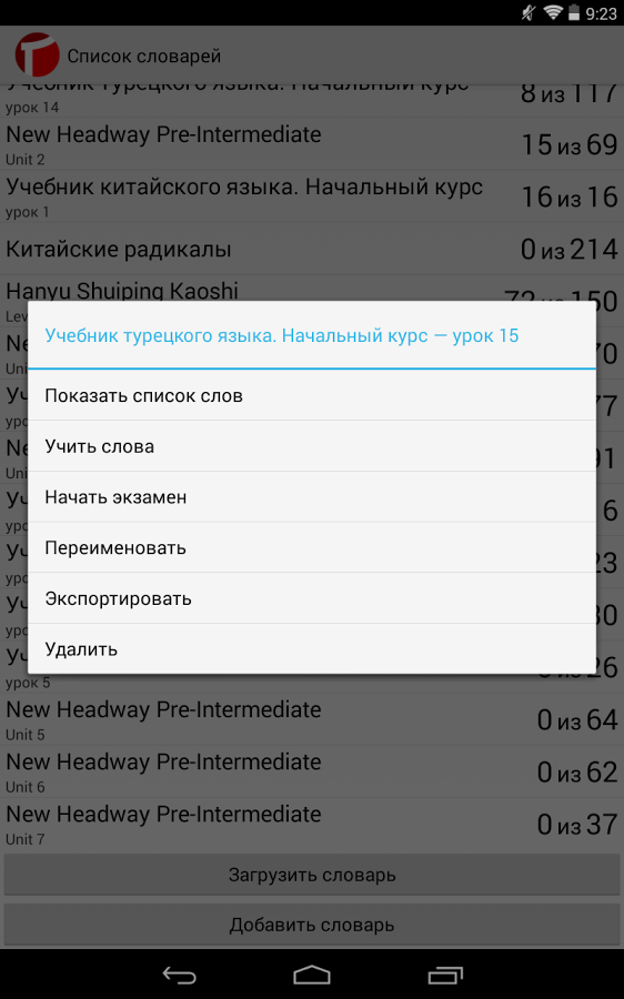 Возможность исключить знакомые слова из изучаемых или пропустить незнакомое слово на экзамене.