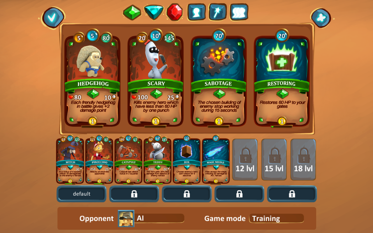 Собирайте свою собственную колоду героев и заклинания, продумывайте свою собственную стратегию к победе!