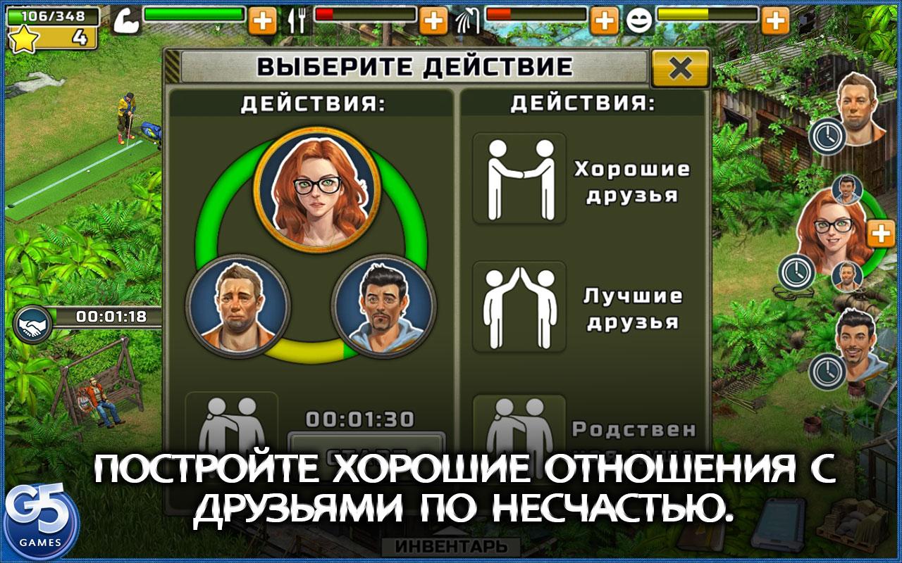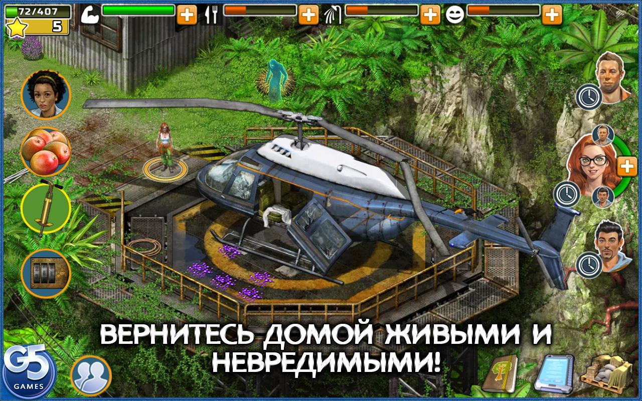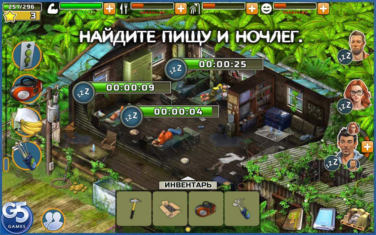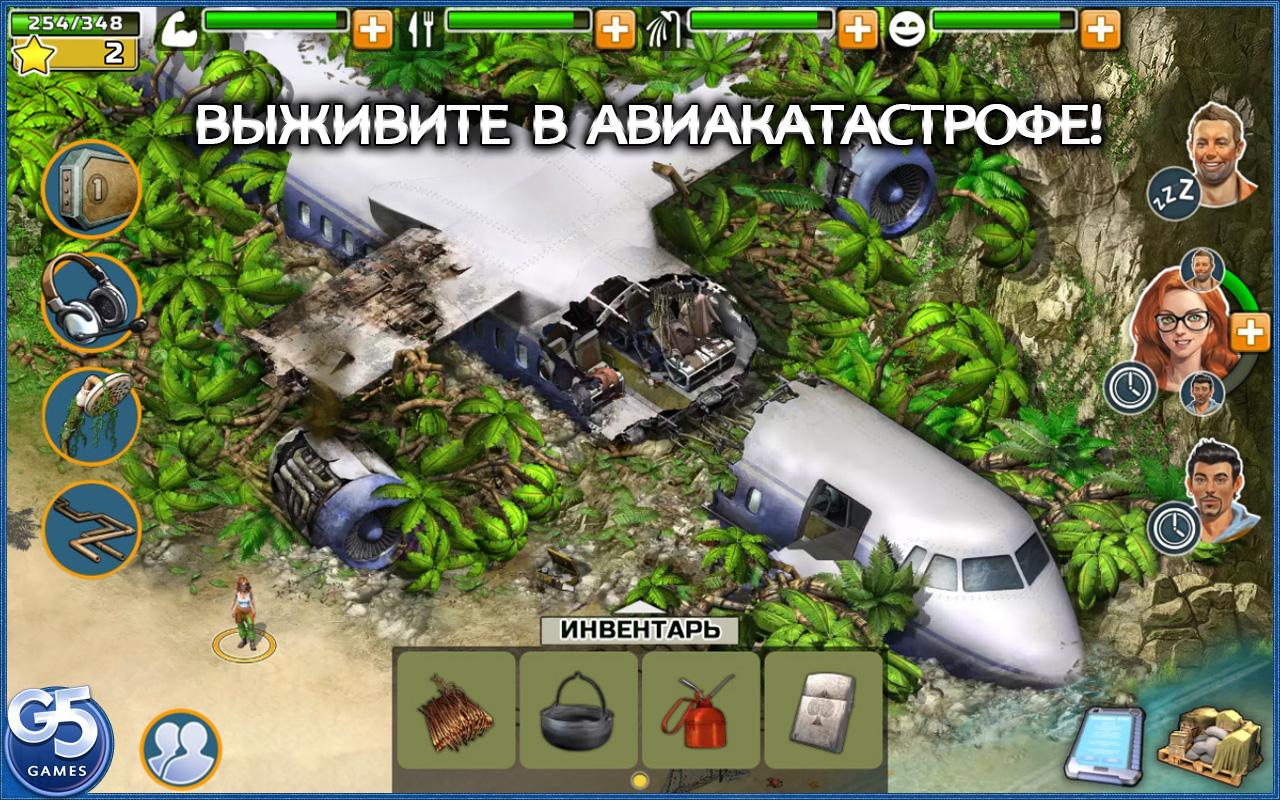 Помогите выжившим найти общий язык, раздобыть еду, раскрыть невероятную тайну острова и вернуться домой. Играя за каждого из трех персонажей, вам придется заботиться об их самочувствии и комфорте, чтобы исследовать остров и выполнять задания. Найдите предметы, которые помогут вам решать головоломки, готовить еду, укажут способ выбраться из джунглей, а также соберите коллекции, чтобы получить невероятные бонусы, которые помогут героям восстановить энергию.